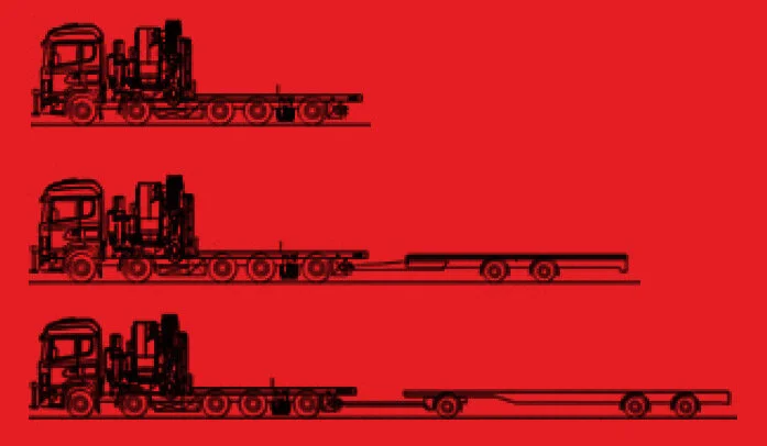 Voidaan varustaa 3–5 akselisella täysperävaunulla tai keskiakseliperävaunulla.
